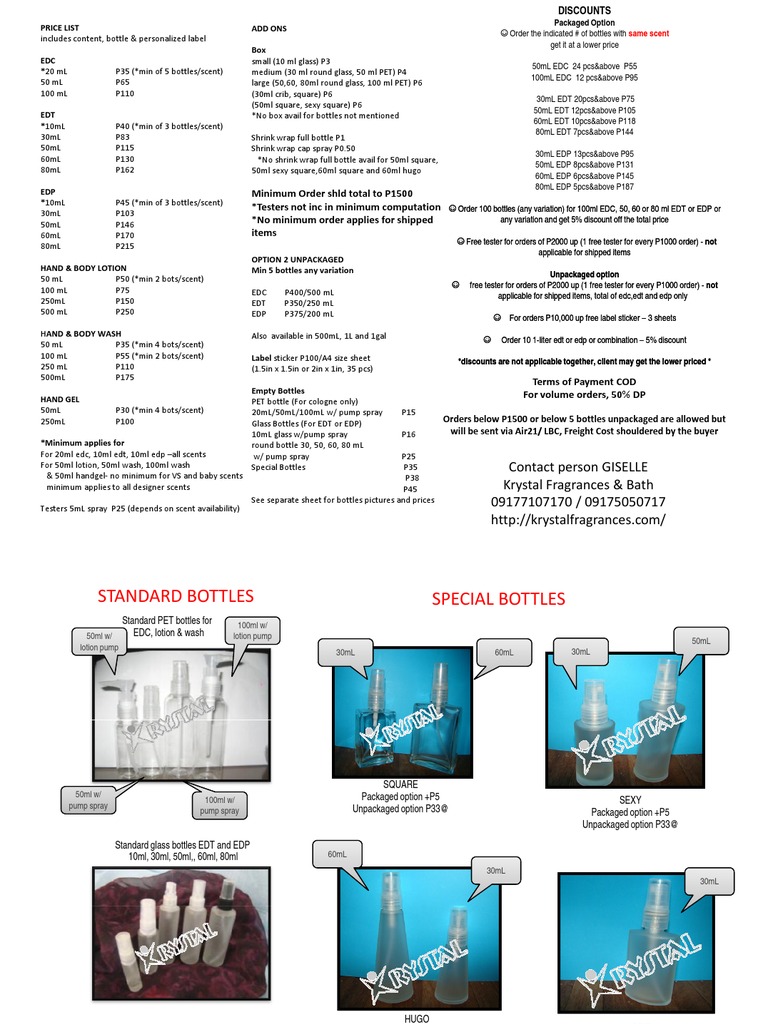 *Testers not inc in minimum computation ☺ Order 100 bottles (any variation) for 100ml EDC, 50, 60 or 80 ml EDT or EDP or