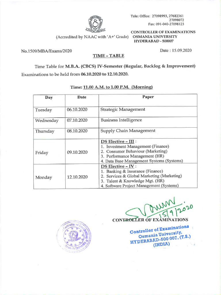 ‘No.1509/MBA/Exams/2020 Date : 15.09.2020