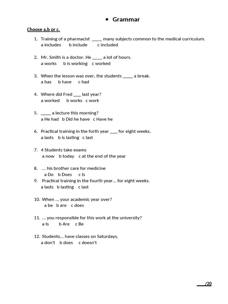 a Do b Does c Is