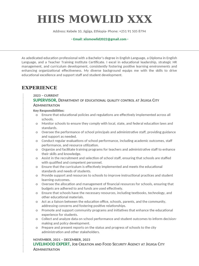 SUPERVISOR, DEPARTMENT OF EDUCATIONAL QUALITY CONTROL AT JIGJIGA CITY