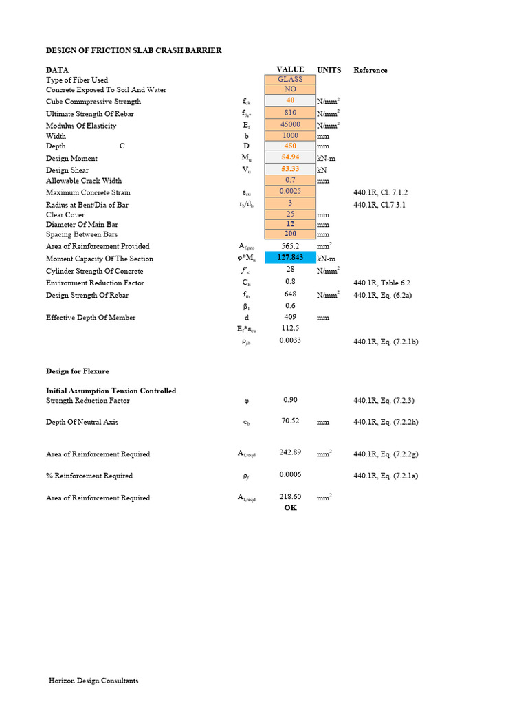 % Reinforcement Provided ρf 0.0014 440.1R, Eq. (7.2.1a)