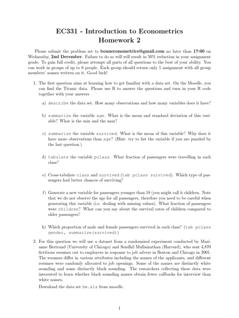 Please submit the problem set to bouneconometrics@gmail.com no later than 17:00 on