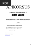 Outline and pre-contents Section One Preperations/ Initiation Chapter One Preparing the Mind Enochean Quote woe, woe, woe, unto man for his thoughts are as stones that weigh him down. The Rauch in Lurianic Qabalism Hermetic Intro. Know thyself and thou art that. The key, as you think/ as you wish. Chapter Two Preparing the Body Lurianic theory, residual mental image. Yoga Gurgief Reich Chapter Three Preparing the Spirit Lurianic Qabalism Forging the Yechidah Chiah/ chi ki The force Chapter Four Sethian Gnostism Two thousand years ago In the New Millennium Chapter Five Sorting the chaff form the wheat Peter Demonovich Ouspensky The Math Subjective perception Objective perception Einsteins general theory Aleister Crowleys Libre vel Legis Chapter Six