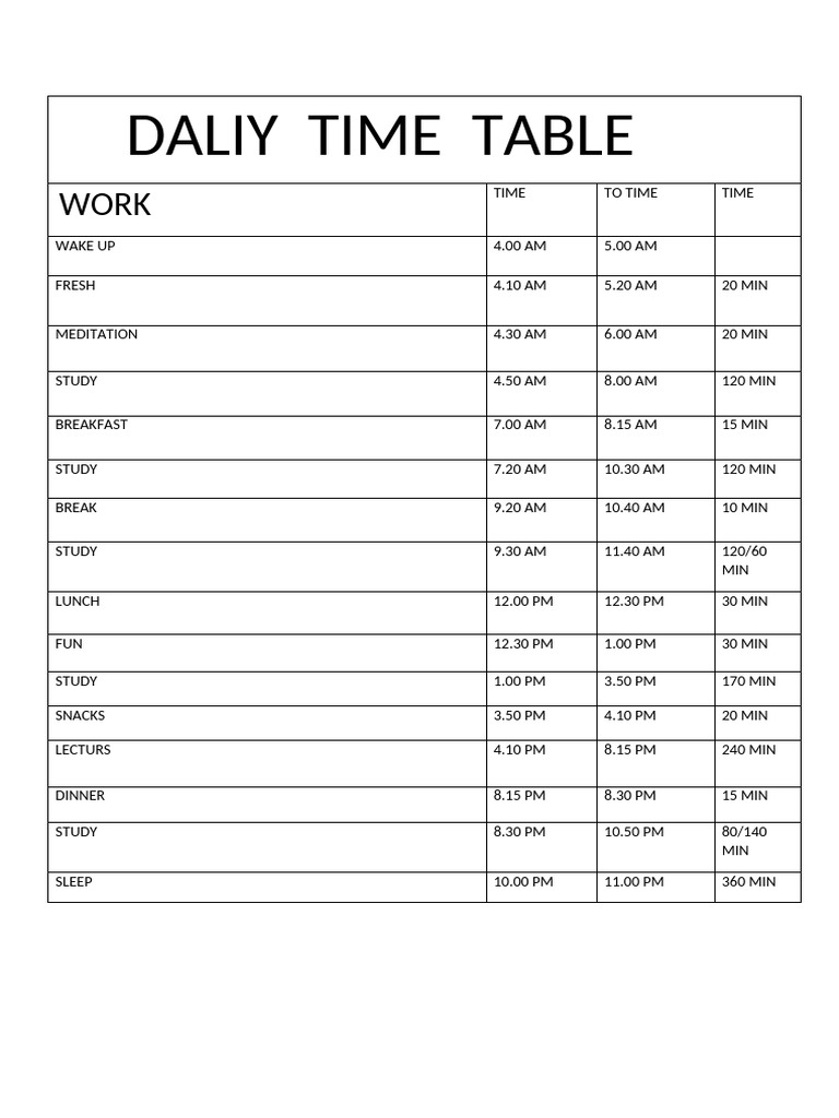 Daliy Time Table