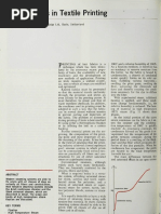 Printing by the all-in method A typical print paste is prepared by sprinkling the required amount of reactive dye intoa stock paste (Recipe 5.2). The solubility of most reactive dyes is sufficient for thissprinkling method, followed by high-speed stirring, to give perfectly smooth prints. The dye can alternatively be predissolved, using the urea to increase the solubility, in asmall volume of hot water. Sodium bicarbonate should only be added after the mixtureof dye solution and thickener has cooled to room temperature. Thickeners: Alginates are the only natural thickeners suitable for use in printing withreactive dyes. All other carbohydrates react with the dye and this results in low colour yields or unsatisfactory fabric handle due to in solubilisation of the thickener. Sodiumalginate also contains hydroxyl groups but it reacts very little, presumably because theionised carboxyl groups on every ring of the polymer chain repel the dye anions. Because of the relatively high cost and limited supply of alginates, attention hasrecently been paid to finding alternatives. Synthetic thickeners with anionic chargesshow great potential. Poly (acrylic acid) does not react at all with typical reactive dyesand colour yields are higher than with alginates. Washing-off is difficult, however, andthe handle may be impaired. Emulsions of both o/w and w/o types are also suitable and half-emulsions havebeen widely used. A stock paste of the half-emulsion type (o/w) can be prepared by Recipe. Alkali: Alkali is essential to produce ionisation of accessible cellulose hydroxyl groups,which can then react with the reactive dye. Sodium bicarbonate has been thepreferred alkali because it is cheap and gives sufficient print paste stability with all butthe most reactive dyes. During steaming or baking it loses carbon dioxide, andincreased ionisation of cellulose follows. Where the stability of the dye is high enough, Recipe 5.3 Emulsifier 1020 g Water 28090 g Urea 80150 g Sodium bicarbonate 20 g Sodium m-nitrobenzenesulphonate 10 g Alginate thickener (312%) 100200 g
