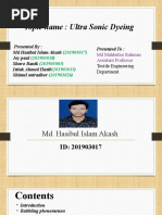 Barium number-130+/-5 Procedure for colour preparation: Reactive: paste dye with cold water and dissolve it by adding water at 5060c for cold brand dyes. for hot brands add hot water at 75-80c to paste. Remazol colour is also prepared as hot brands. Vat microfine dispersion : The amount of dyestuffs needed to obtain a definite shade to 10-20 times its weight of water at about 40c and stirred until the dyestuffs are uniformly dispersed. The dye solution is then made upto the required volume. There are two types of dyes: 1. Cationic: reactive, vat, svd, direct, metal complex, acid, mordant, 2. Anionic: basic The reactive dyes are mostly used for cotton. In the industries, the reactive dyes are widely used for dyeing cotton and polyester- cotton blends .the dyeing of the reactive dyes is carried out in mostly jumbo jigger and the latest kuster dyeing machine. The kuster dyeing machine is the cold pad batch machine in which the fabric is passed over the conditioning roller by which the temperature of the fabric is maintained as before dyeing the fabric can be in the hot condition because of the Stenter. The fabric is then padded with the dye liquor containing the dye and the sodium silicate in the proportion of1:4 the fabric after the padding is rotated on the motor for 24hours. After rotating the fabric is soaped separately in soaping machine. In the jigger dyeing machine there are two bowls (roller). The fabric is loaded on to the one roller and is wounded onto the other roller. During this rotation the fabric is dipped in the liquor and thus gets dyed. One rotation is called as one ends. The machine runs for almost 20 hours. The dyeing is carried out in three machines: For wovens: jigger, hthp, kuster, winch For knits: hthp