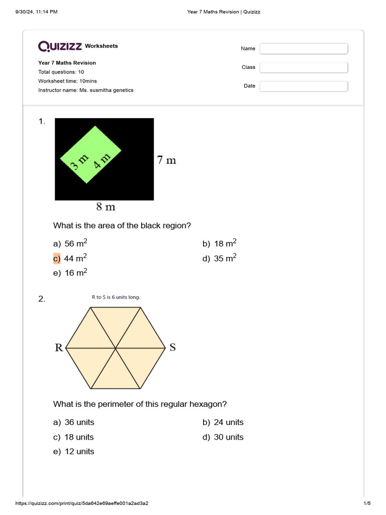 9/30/24, 11:14 PM Year 7 Maths Revision | Quizizz