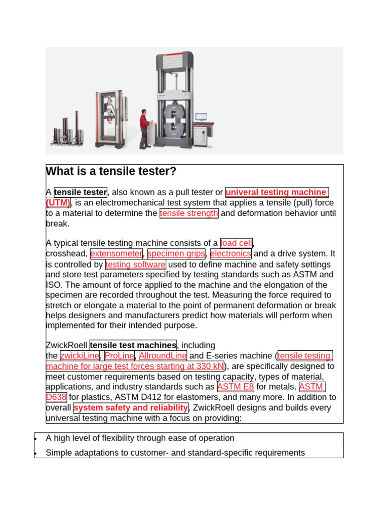 ZwickRoell tensile test machines, including
