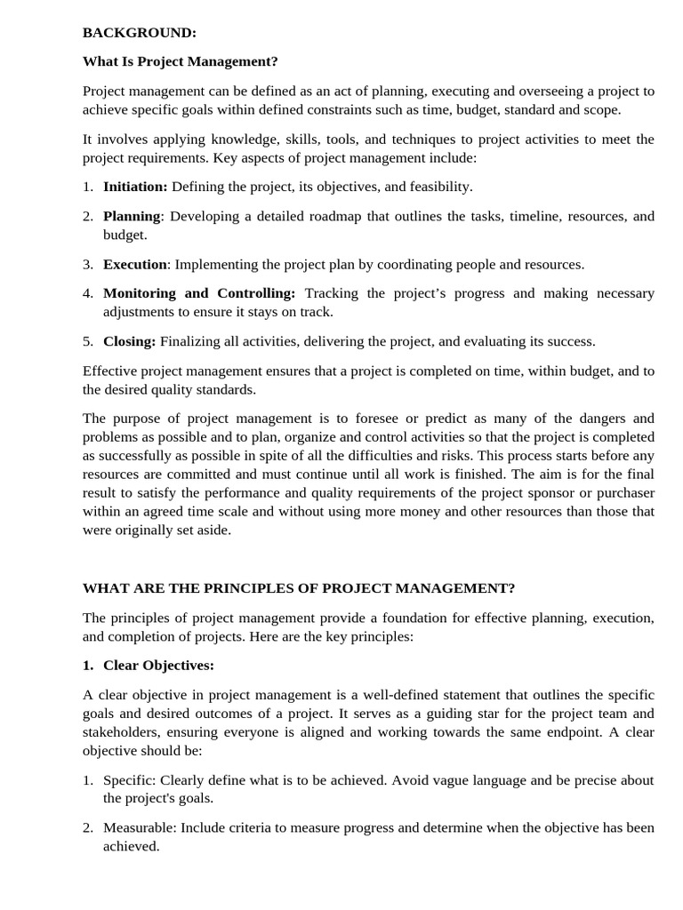 project knows what is expected of them, which enhances coordination, accountability, and the