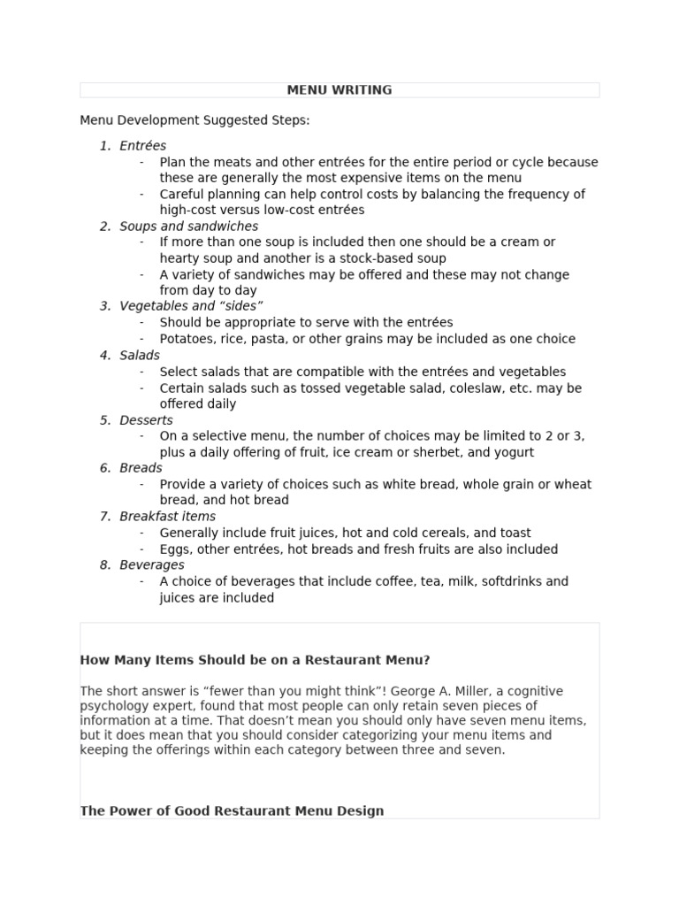 Before you dive into design, you have to learn to write a restaurant menu. Using