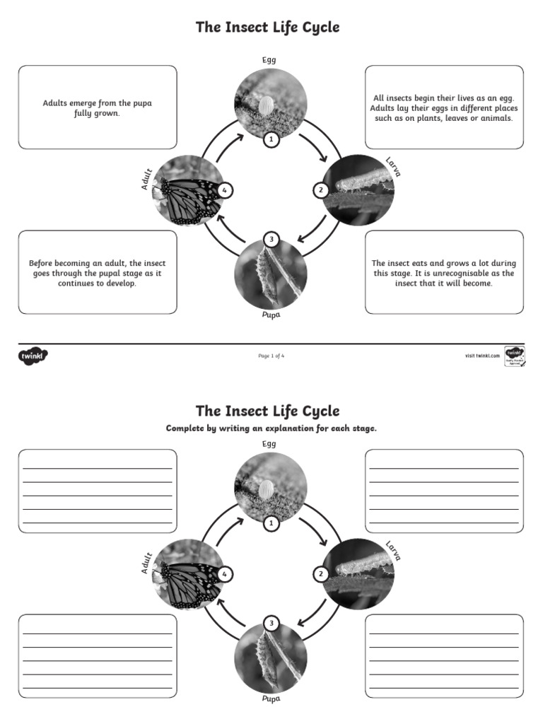 Complete by drawing a picture and writing a title and an explanation for each stage.