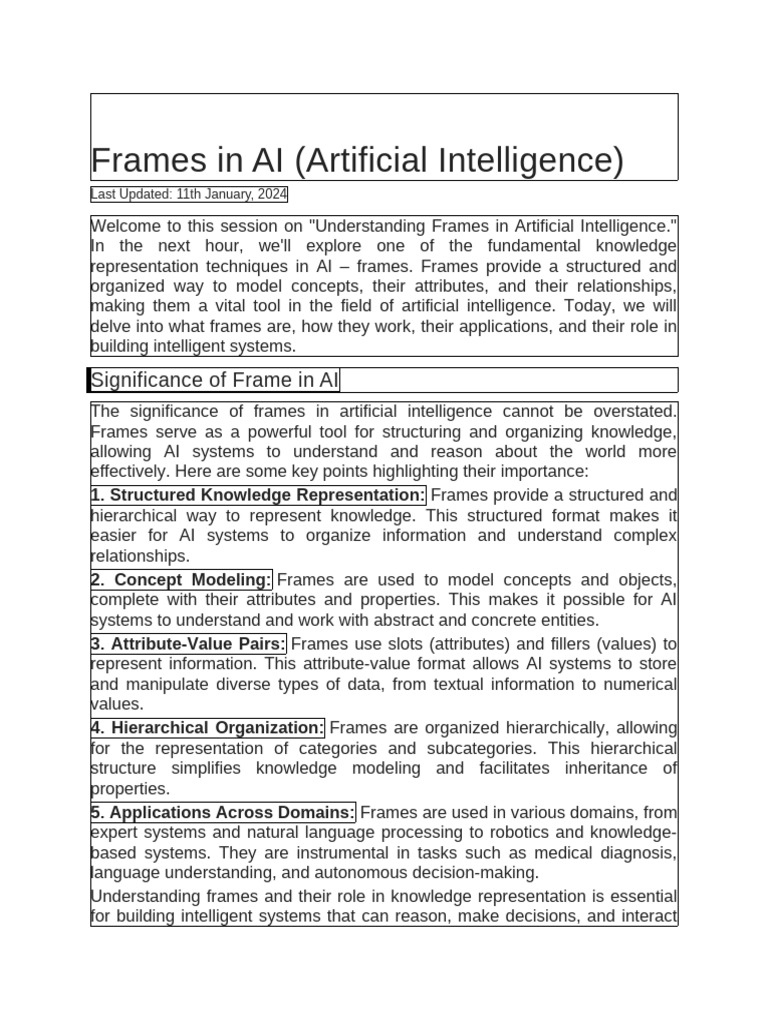 Welcome to this session on "Understanding Frames in Artificial Intelligence."