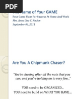 Following our mopping example, goal oriented motivation would suggest that you c an motivate by focusing on the mopped floor. Visualizing a specific picture of e xactly how a mopped floor will look (clear), determining the simple steps necess ary to having a mopped floor (realistic) and describing the benefits of a mopped floor (desirable) would create motivation. [edit] Theory Three: Principle Oriented Motivation Another form of motivation is principle oriented motivation. This is where you a re motivated by personal principles of how you should act. By using your own per sonal standards you can create motivation simply by the desire to uphold them. Principle oriented motivation works well when you already have strong principles you can use as motivating factors. Unlike intrinsic task or goal oriented motiv ation, principle oriented motivation takes time to establish as you develop pers onal standards that you wish to remain unbroken. These standards could be duty, service, truth, logic, love, compassion or morality. Motivating to mop could start by focusing you on your standard of organization o r cleanliness that you want to uphold. [edit] Theory Four: Associated Motivation A final and more recent theory of motivation is associated motivation. This theo ry is peculiar in that it doesn t use a motive to create the feeling of motivation at all. Instead, you motivate yourself through matching your environment, commu nication and thought patterns with when you are motivated. This triggers the fee lings of motivation and creates action. Tony Robbins and the developers of NLP h as been a chief proponent of using associated motivation.