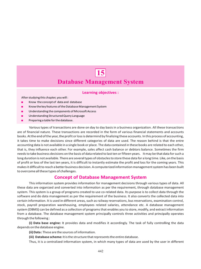 created. For example, marks secured by all the students of a school in the examination are a database. On the basis of