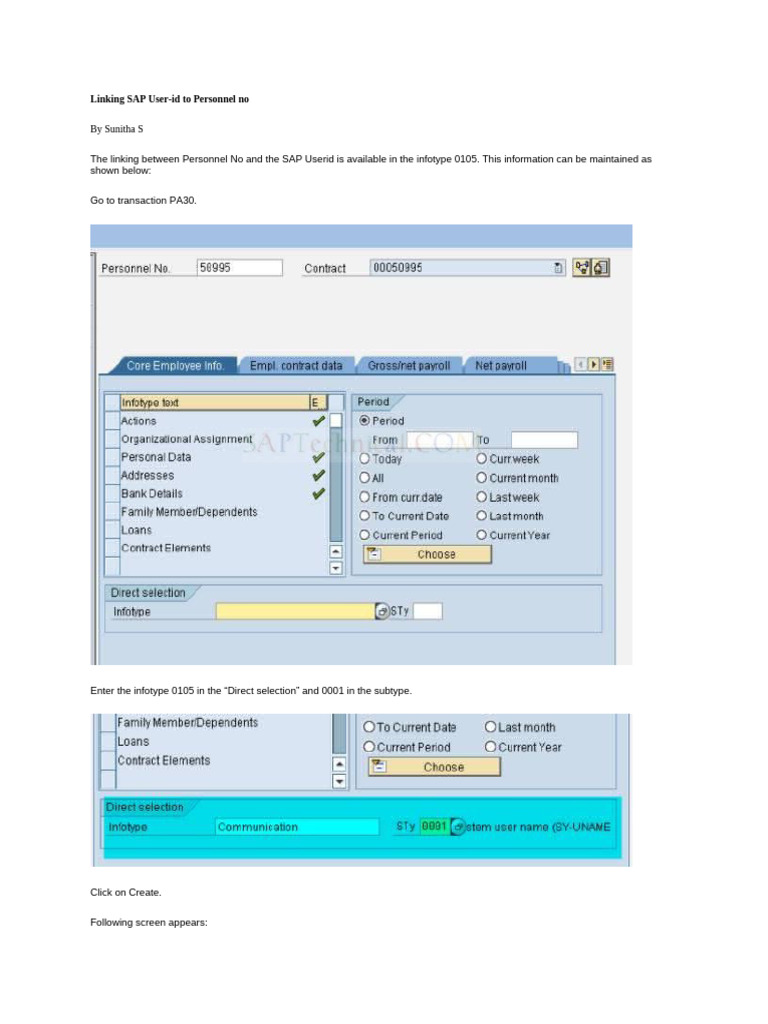 Enter the start date and the end date as required. Also enter the SAP User-id to which this personnel number has to be mapped.