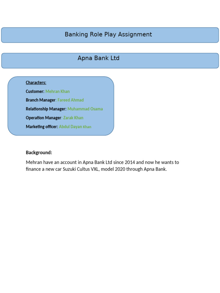 Banking Role Play Assignment