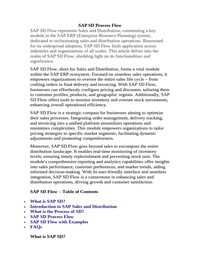 Moreover, SAP SD Flow goes beyond sales to encompass the entire