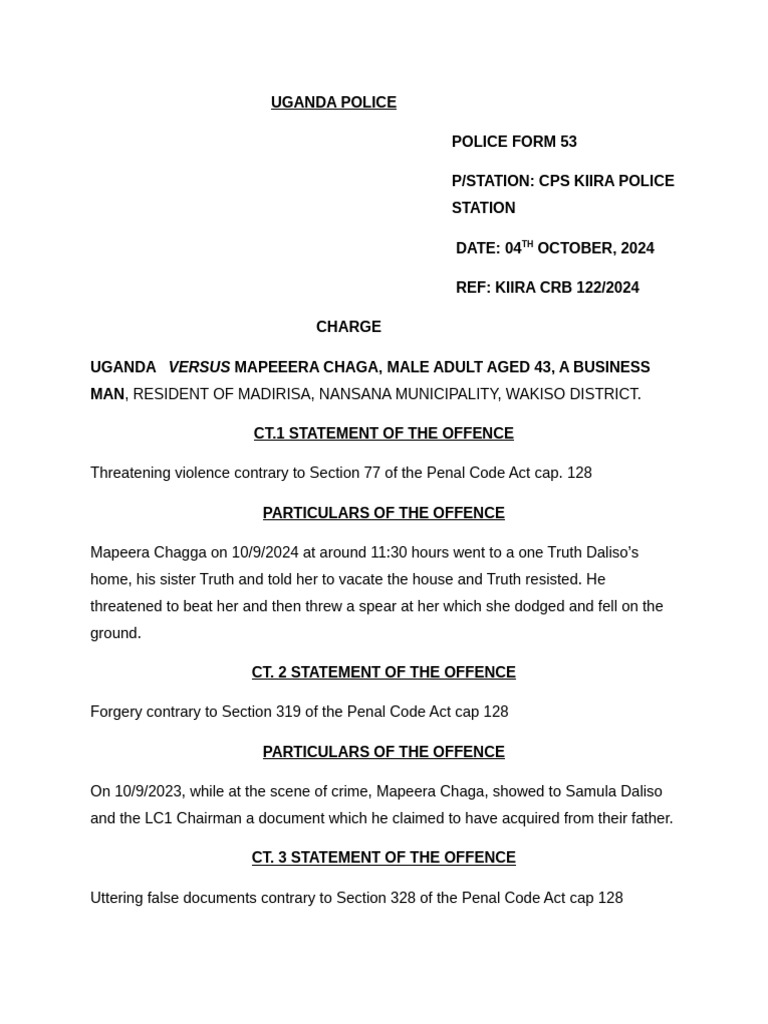 P/STATION: CPS KIIRA POLICE