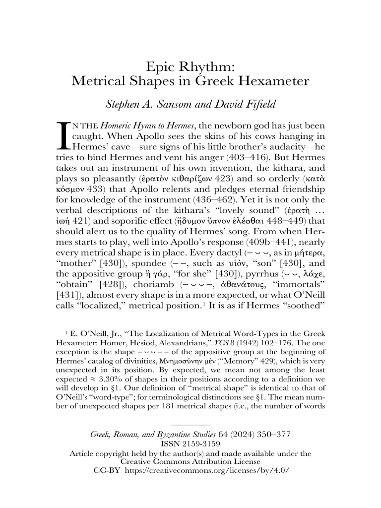 3 S. A. Sansom and D. Fifield, “SEDES: Metrical Position in Greek