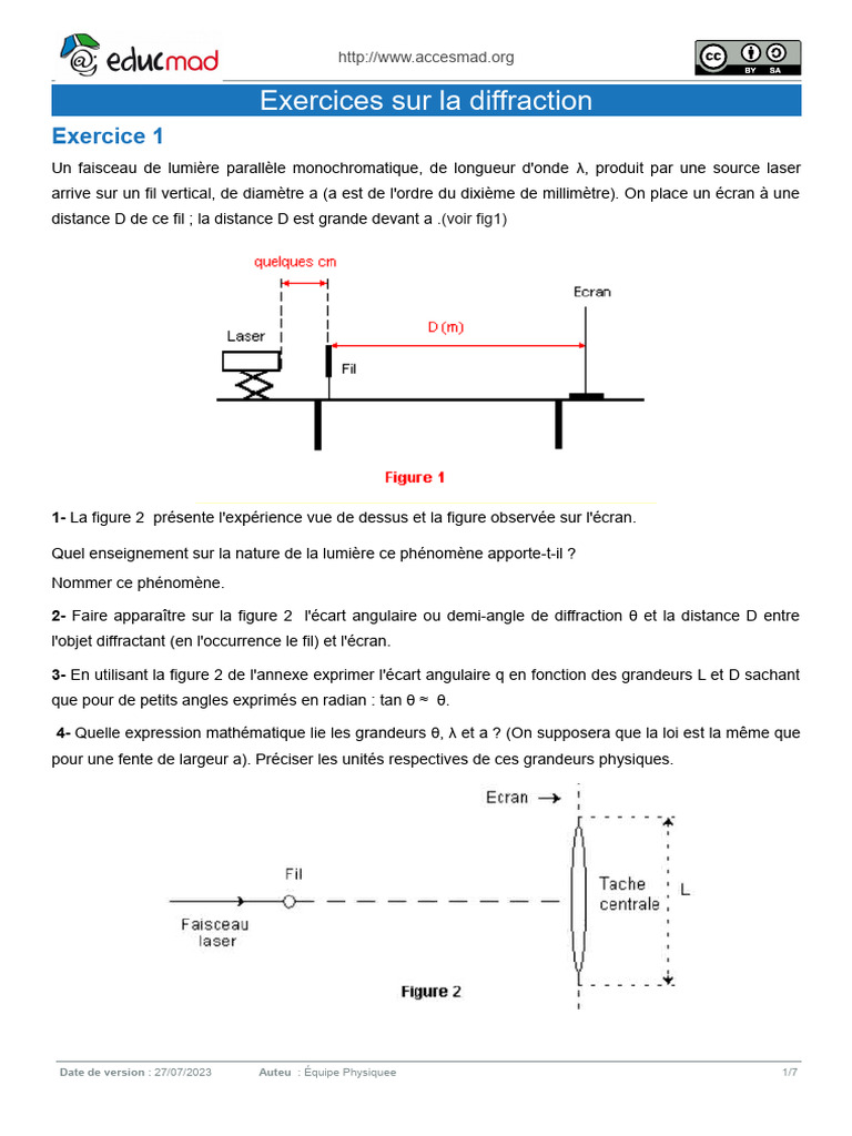 5- En utilisant les résultats précédents, montrer que la largeur L de la tâche centrale de diffraction