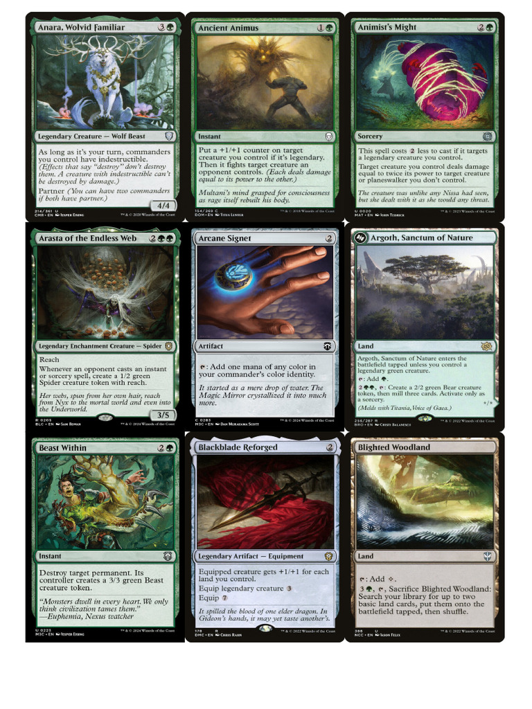 Nilea deals 2 damage vo target creature create a 1/1 green Forest Dryad