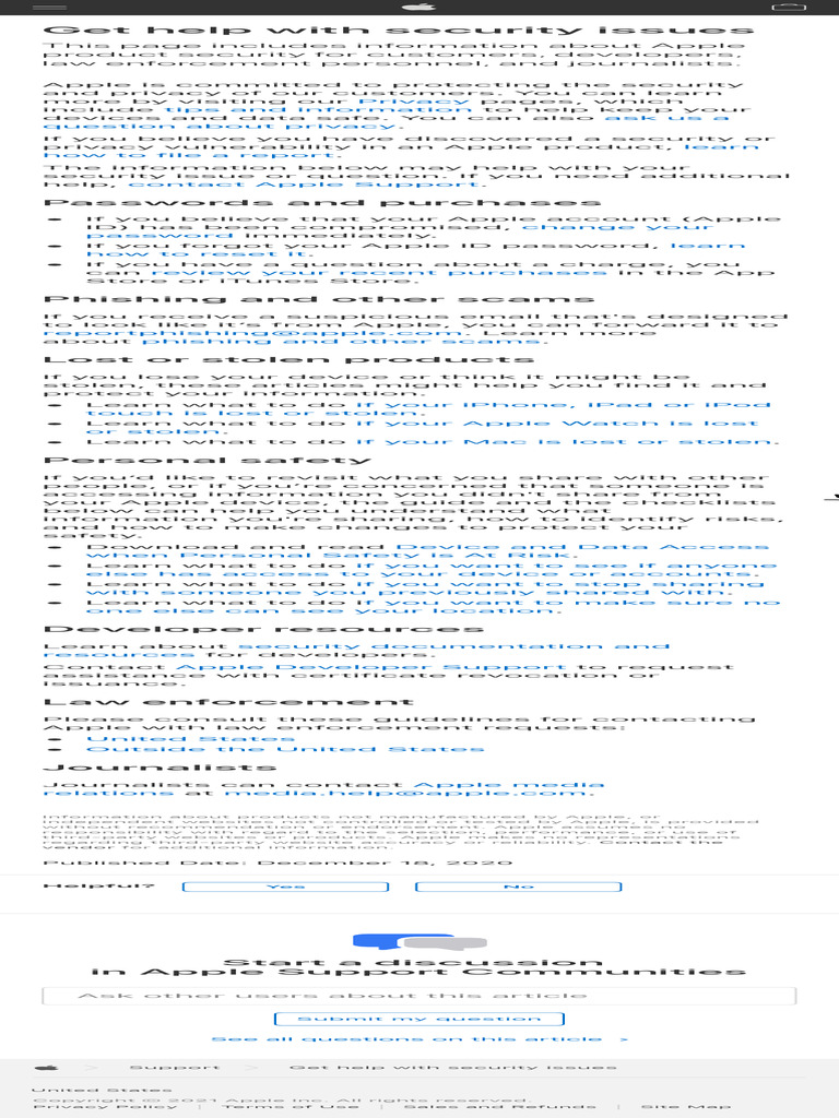 Support Get help with security issues