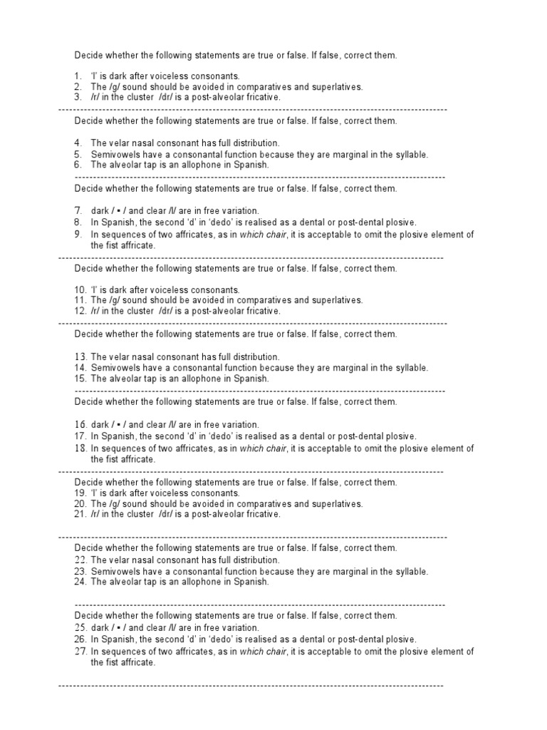 26. In Spanish, the second d in dedo is realised as a dental or post-dental plosive.