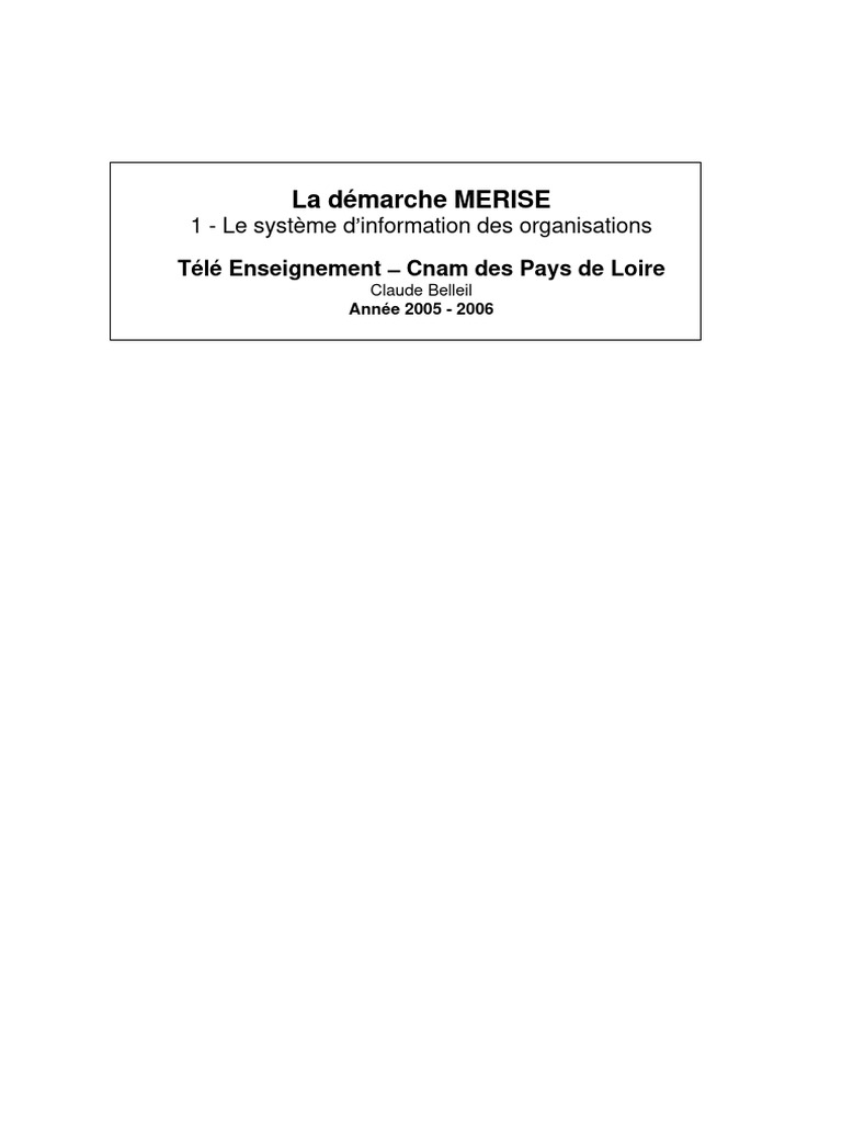 Merise Le Système d Information des Organisations Claude Belleil 4