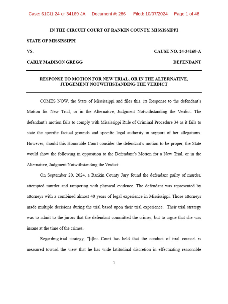 On September 20, 2024, a Rankin County Jury found the defendant guilty of murder,