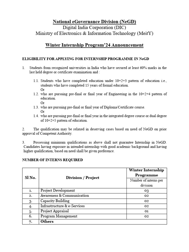 ELIGIBILITY FOR APPLYING FOR INTERNSHIP PROGRAMME IN NeGD