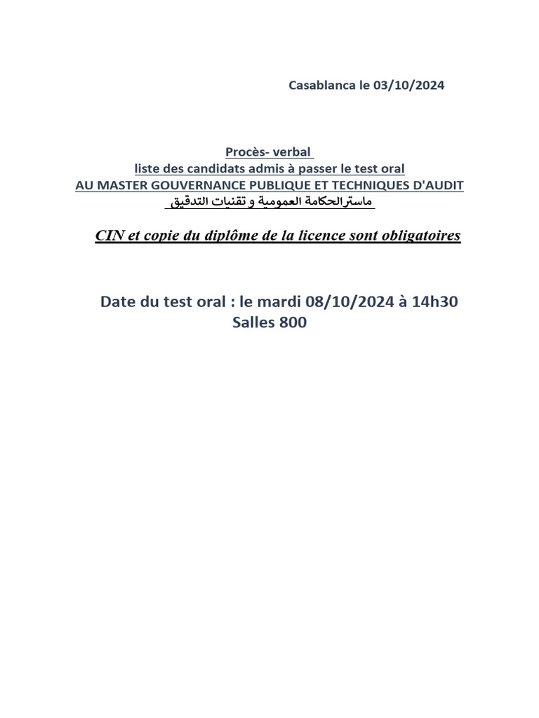 Date du test oral : le mardi 08/10/2024 à 14h30