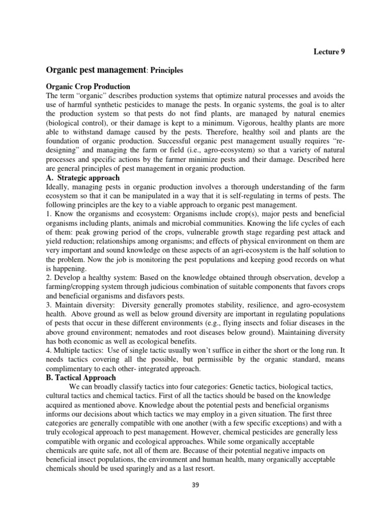 consumers, beneficial insects and the environment. Organic farmers must be concerned with the