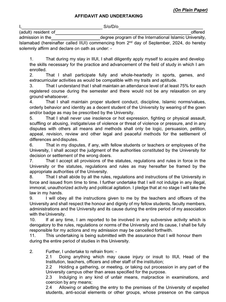 1. That during my stay in IIUI, I shall diligently apply myself to acquire and develop