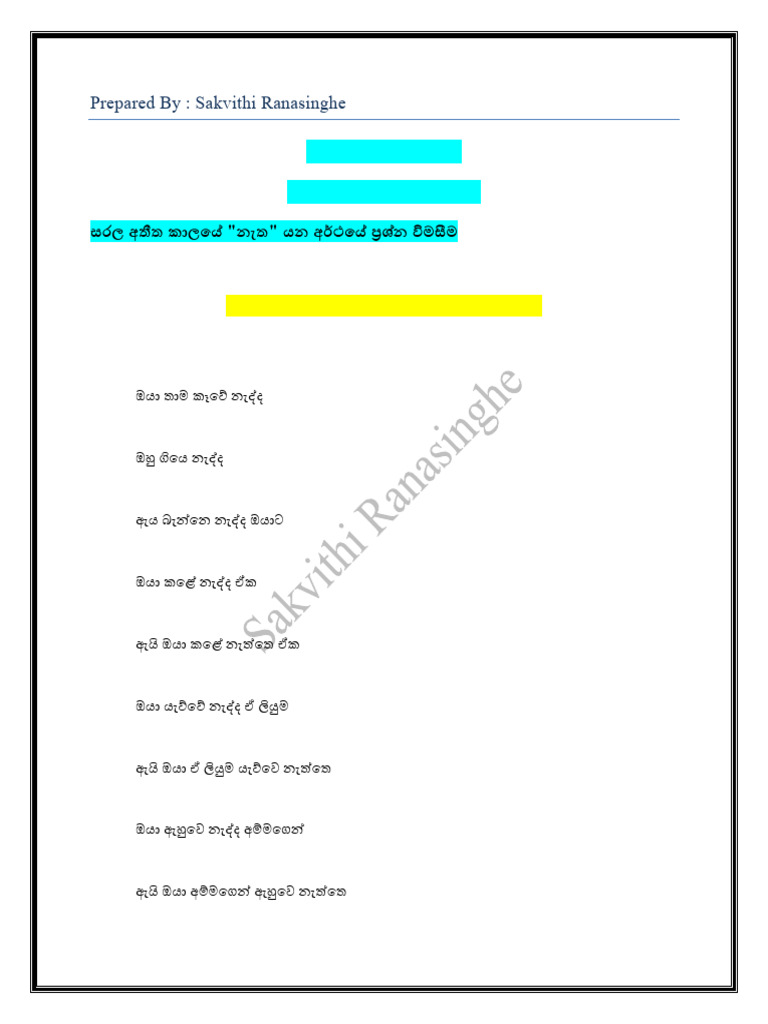 සරල අතීත කාලයේ "නැත" යන අර්ථයේ ප්රශ්නන ිමසීම