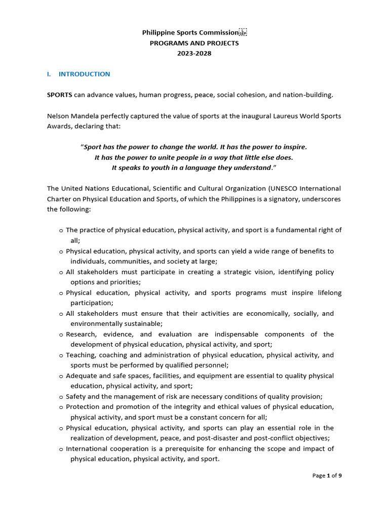 Charter on Physical Education and Sports, of which the Philippines is a signatory, underscores