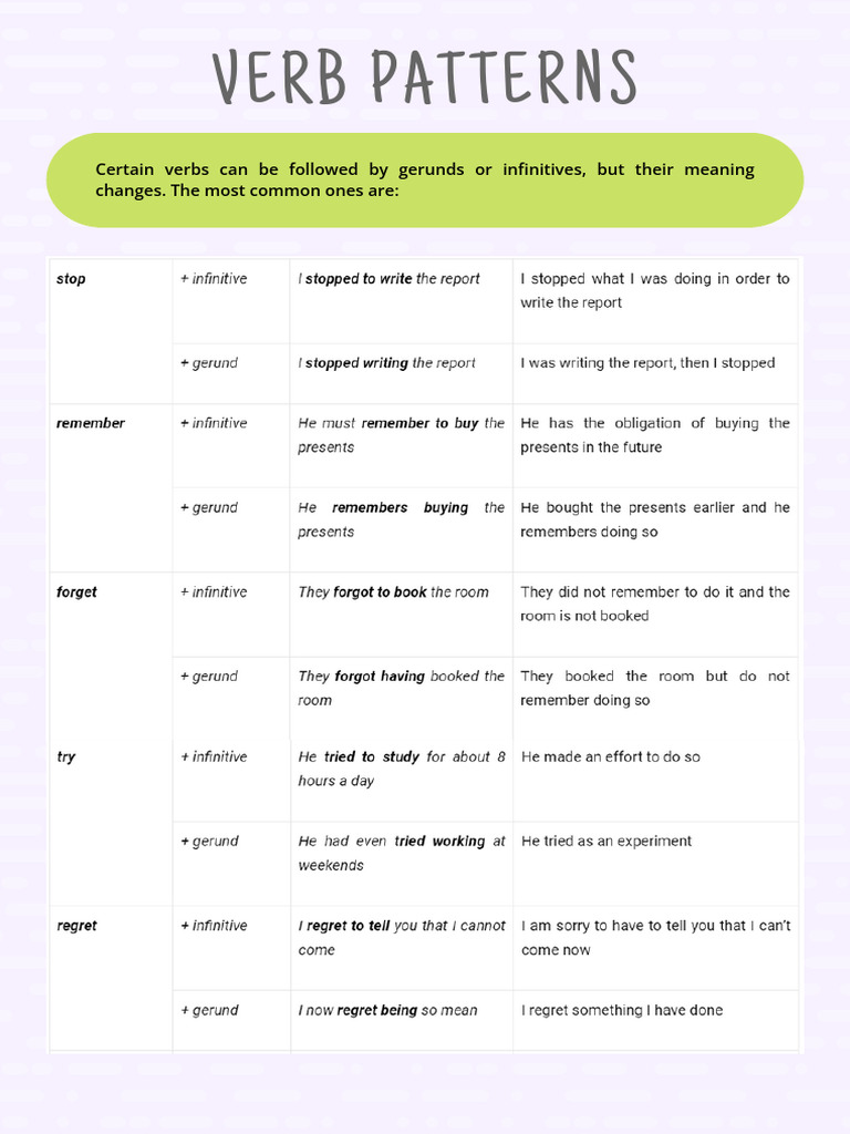 Certain verbs can be followed by gerunds or infinitives, but their meaning