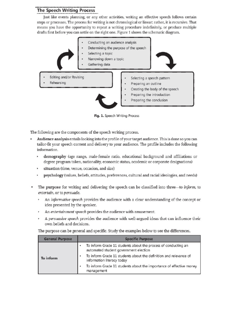 + The purpose for writing and delivering the speech can be classified into three—to inform, to