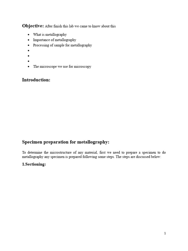 • Importance of metallography
