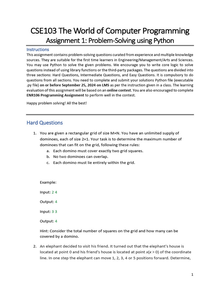 This assignment contains problem-solving questions curated from experience and multiple knowledge