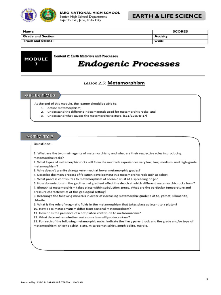 Lesson 2.5: Metamorphism