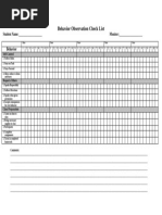 BEHAVIOR OBSERVATION CHECKLIST