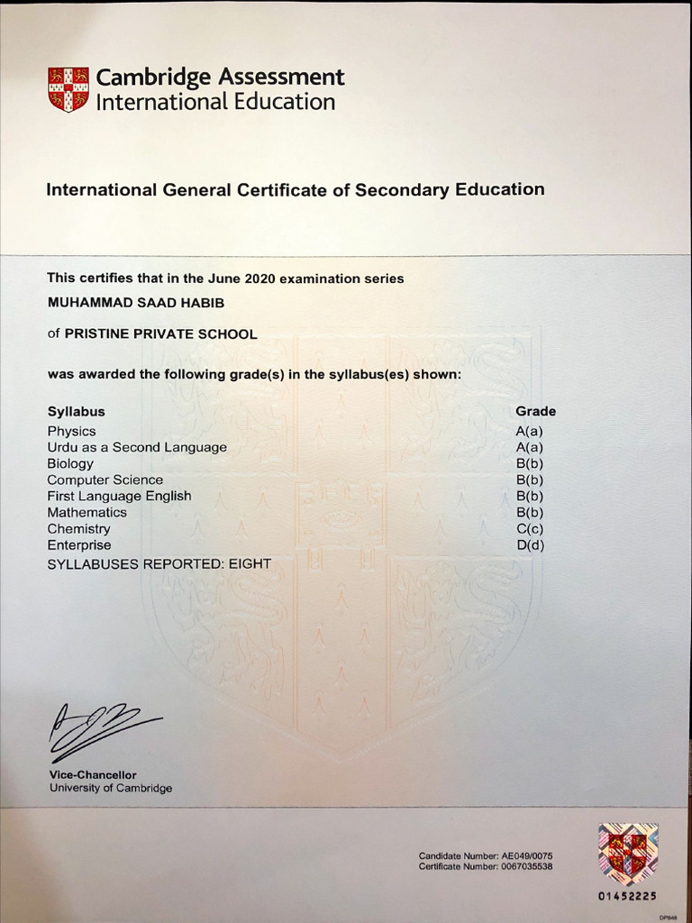01452225INTERNATIONAL GENERAL CERTIFICATE OF SECONDARY EDUCATION (IGCSE)