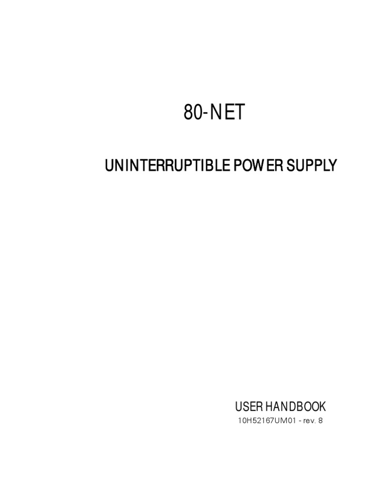 This Users Manual contains information regarding the installation, operation and use of the Uninterruptible Power System (UPS) 80-NET. It is advised that this document be consulted before installation of the equipment, whose operation shall only be carried out by qualified personnel. Thereafter, it shall be kept and referred to whenever it is necessary to carry out work on the UPS.