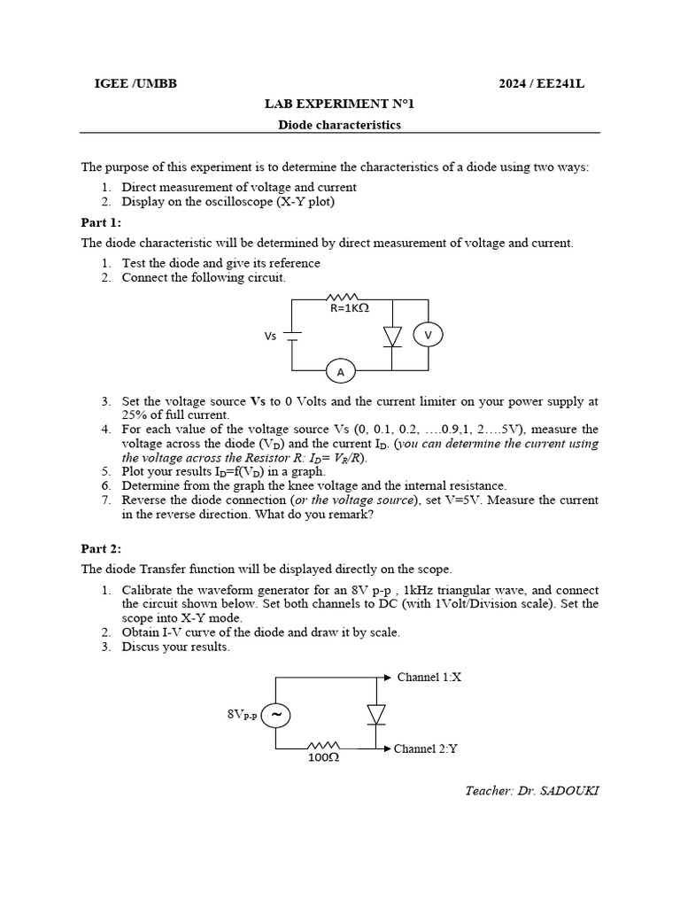 The purpose of this experiment is to determine the characteristics of a diode using two ways: