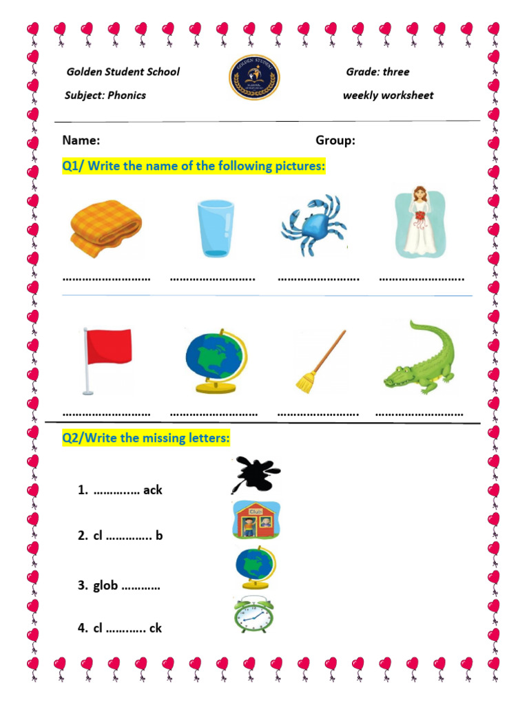 Subject: Phonics weekly worksheet