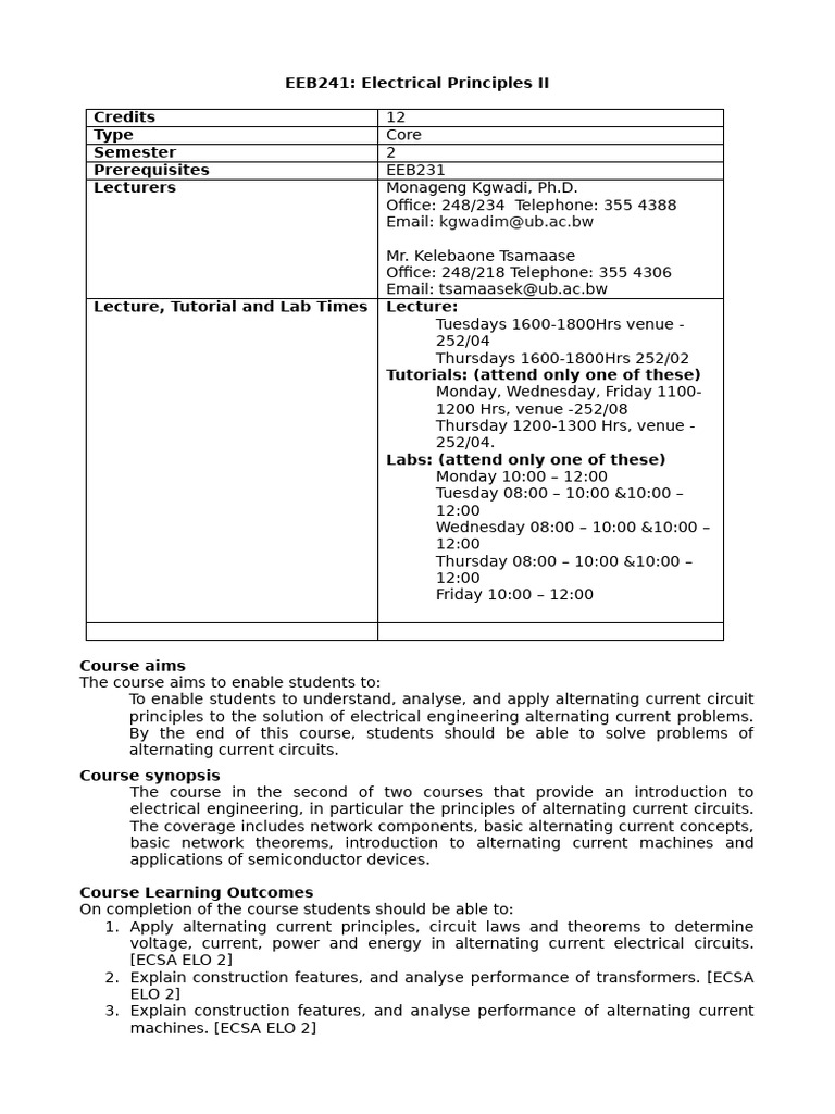 Laboratory work is compulsory for this course and is designed to reinforce concepts