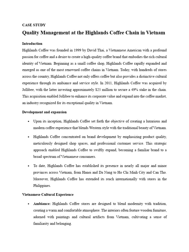 Quality Management at the Highlands Coffee Chain in Vietnam