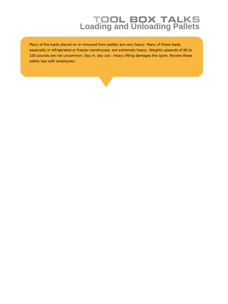 Many of the loads placed on or removed from pallets are very heavy. Many of these loads,