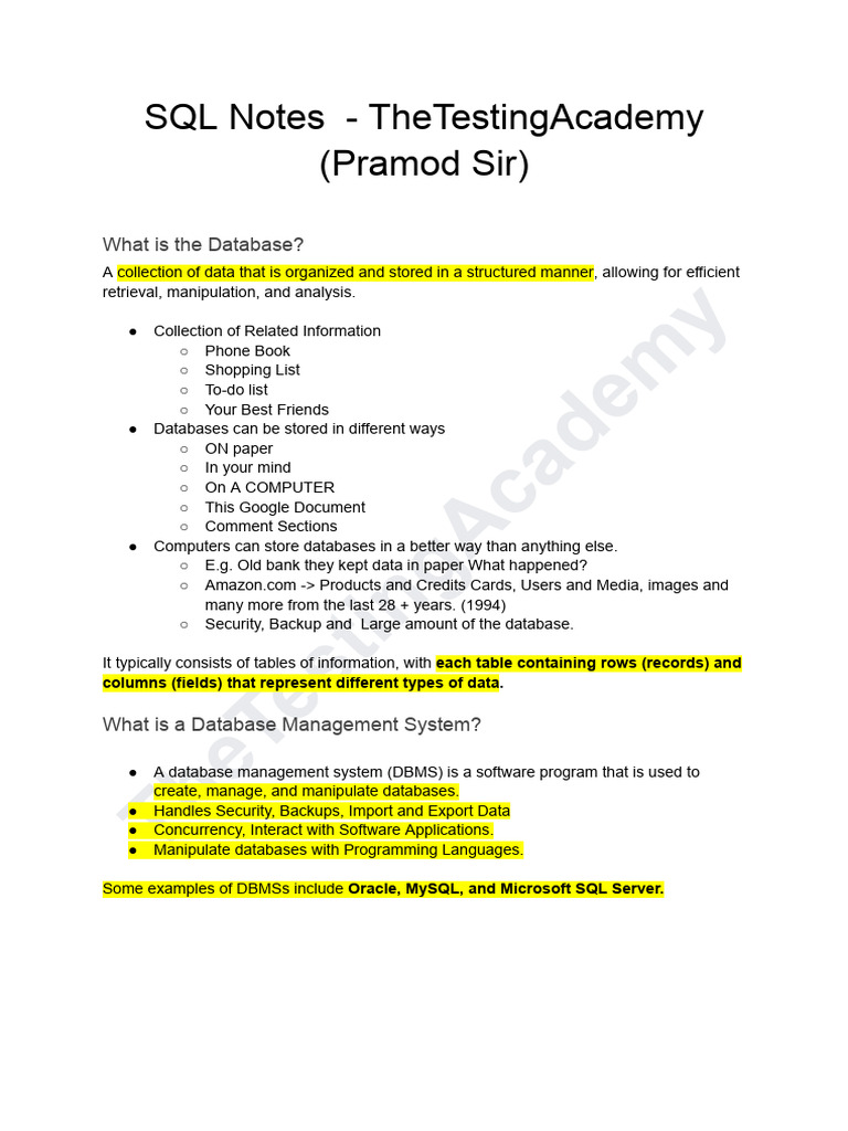 Some examples of DBMSs include Oracle, MySQL, and Microsoft SQL Server.