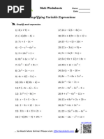 2𝑎 + 6𝑏 − 𝑎 − 𝑏 Simplify 3𝑎3 𝑏 × 5𝑏𝑐 × 2𝑎𝑐 2
